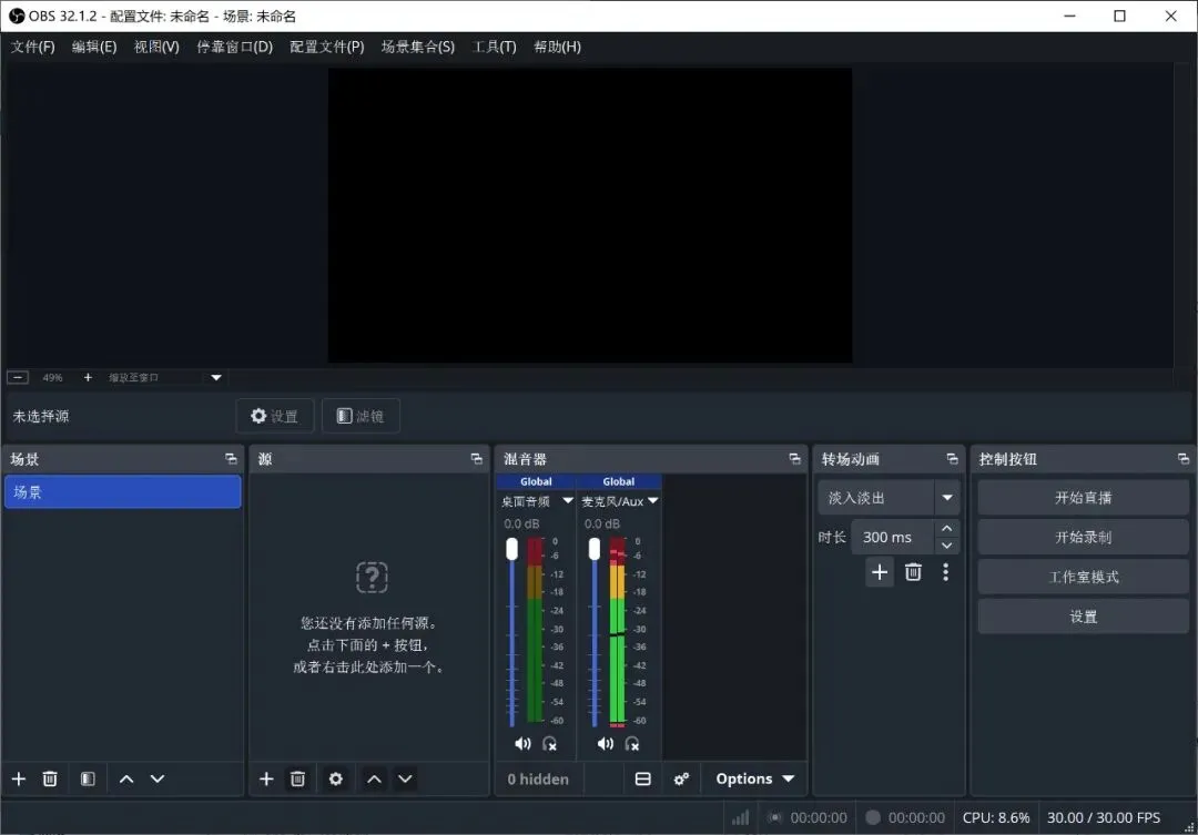 专业录屏和直播软件–OBS Studio,v32.1.2新版本,中文绿色便携版&安装版。