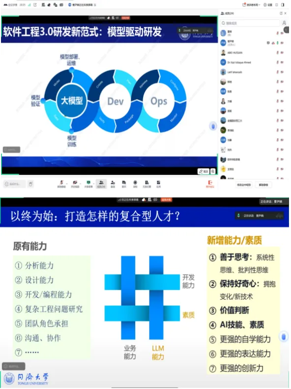 针对AI带来的冲击,朱少民明确了软件工程专业人才培养的转型方向,提出核心能力重构与教学改革并行的应对策略。他指出,新时代软件人才需重点提升系统性思维、批判性思维等高阶能力,强化对AI智能体的驾驭能力和问题定义能力;教学中应推行PBL教学法,将问题抛给学生,培养其分析问题与解决问题的能力;同时改革课程评估体系,强化过程性考核,鼓励学生利用AI工具辅助学习,实现个性化教学辅导。他还强调,学生应保持终身学习的好奇心,以适应快速变化的技术环境。