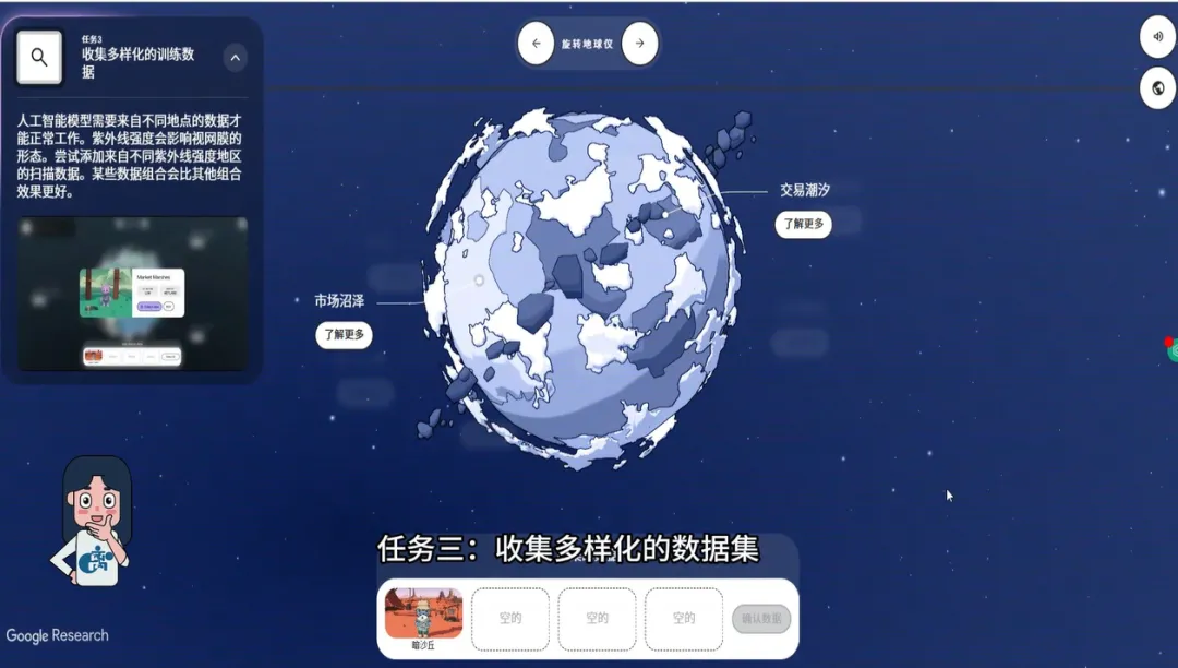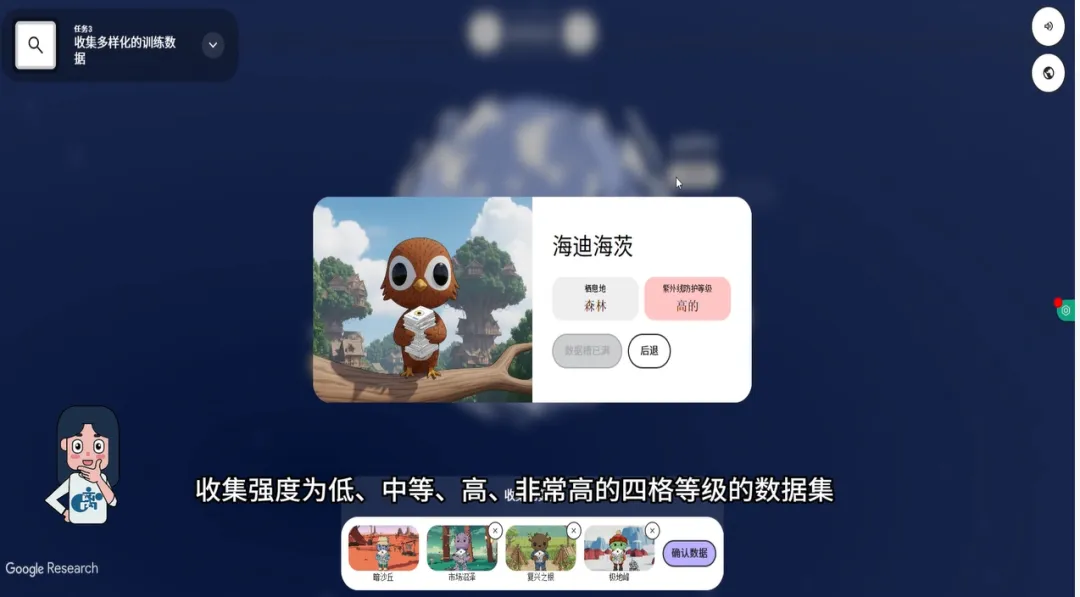 这一关的设计极其精巧。它用紫外线强度作为游戏机制,实际上传递了一个核心信息:高质量、高覆盖度的数据,比单一来源的大数据量更宝贵。