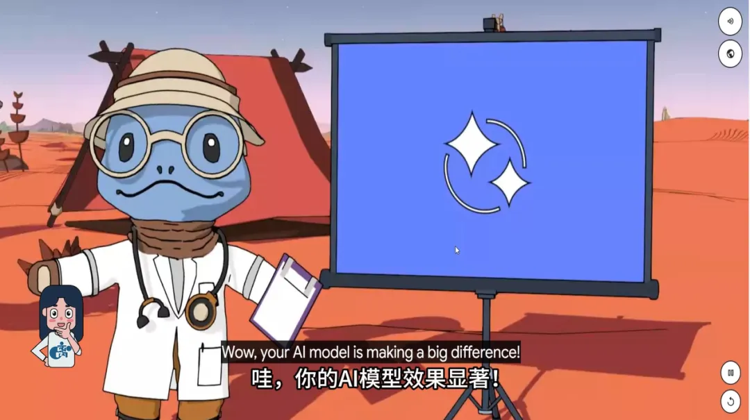 这一步的训练和测试,实际上教给玩家的就是监督学习的基础流程——AI通过学习带标签的数据找出规律,然后用从未见过的测试数据进行评估,验证模型到底有没有“学到位”。