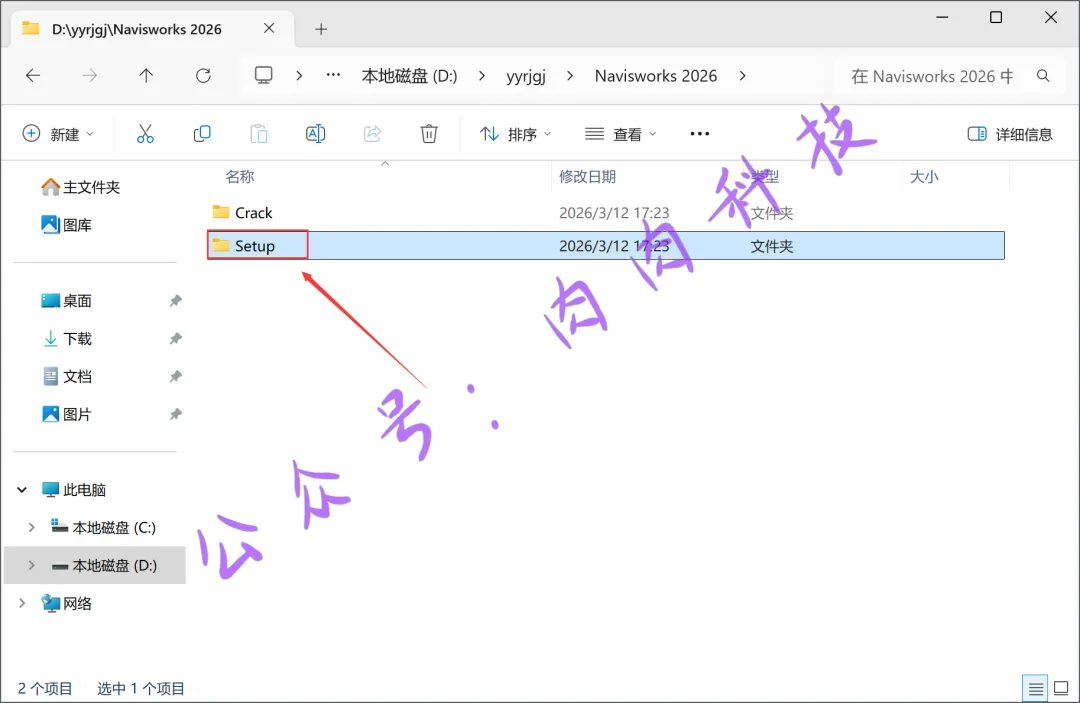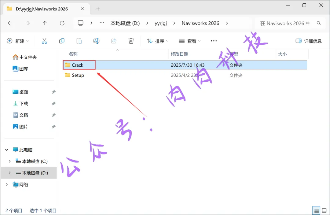 10.返回到Navisworks 2026文件夹,双击打开【Crack】文件夹
