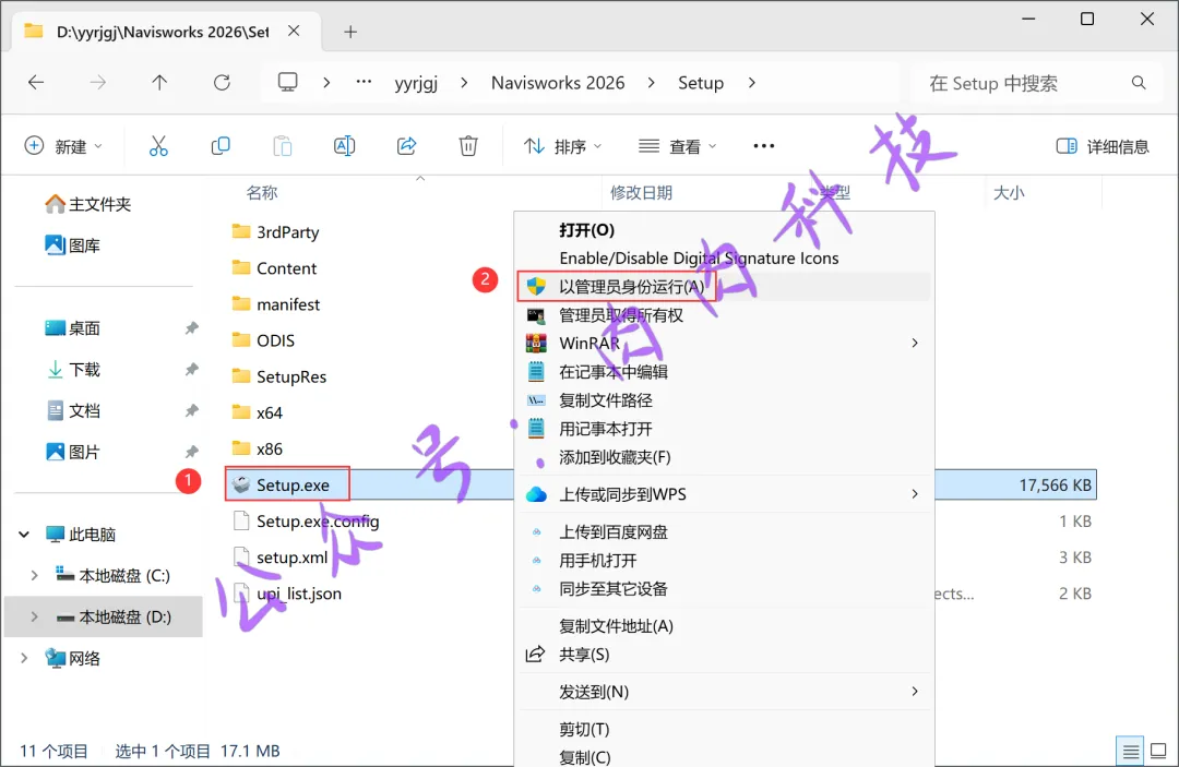 4.找到【Setup.exe】安装程序,并右键点击【以管理员身份运行】