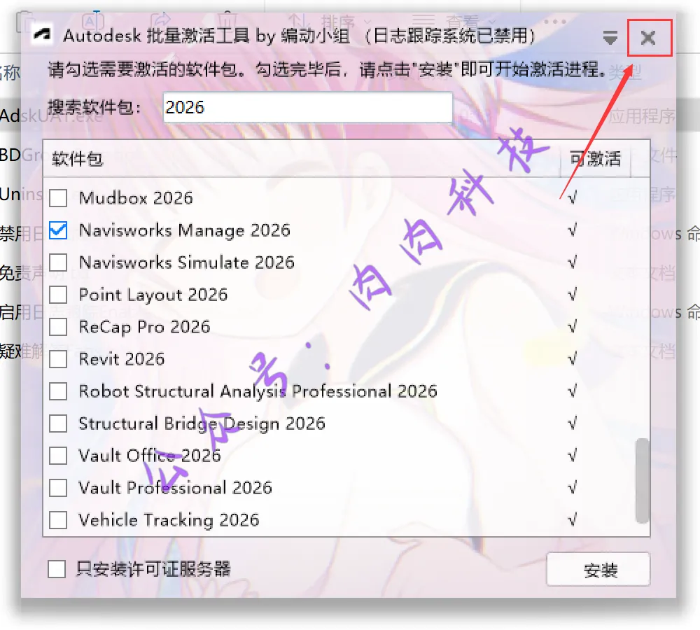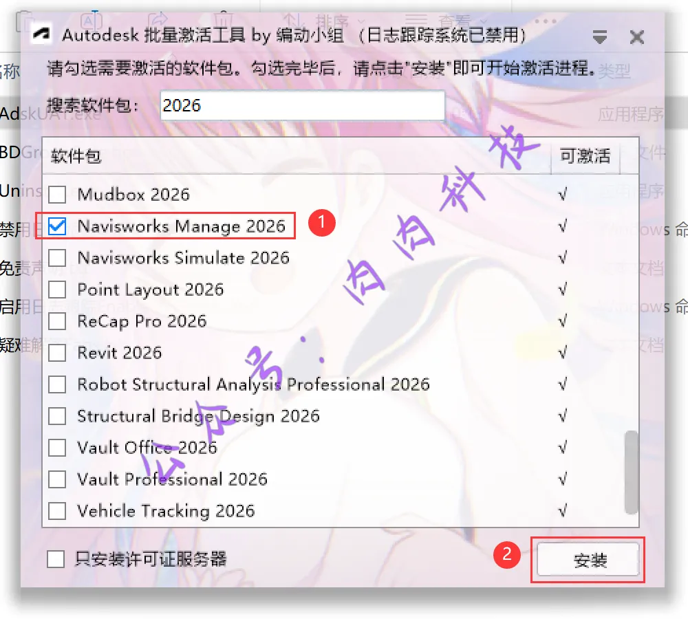12.勾选【Navisworks Manage 2026】,再点击【安装】