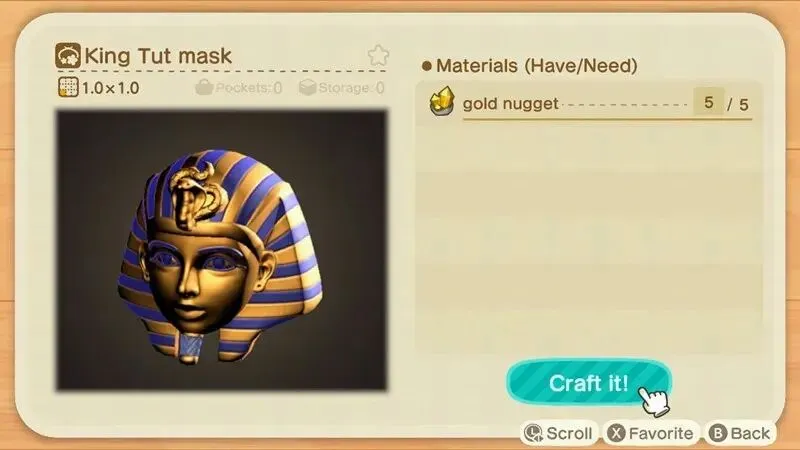再拿《动物森友会》打个比方:角色的头部装备有很多,绝大多数都只是外观不同而已。但是有一次更新中,动森出了图坦卡蒙面具,角色戴上它之后走路,会因为面具太重而向前跌倒。