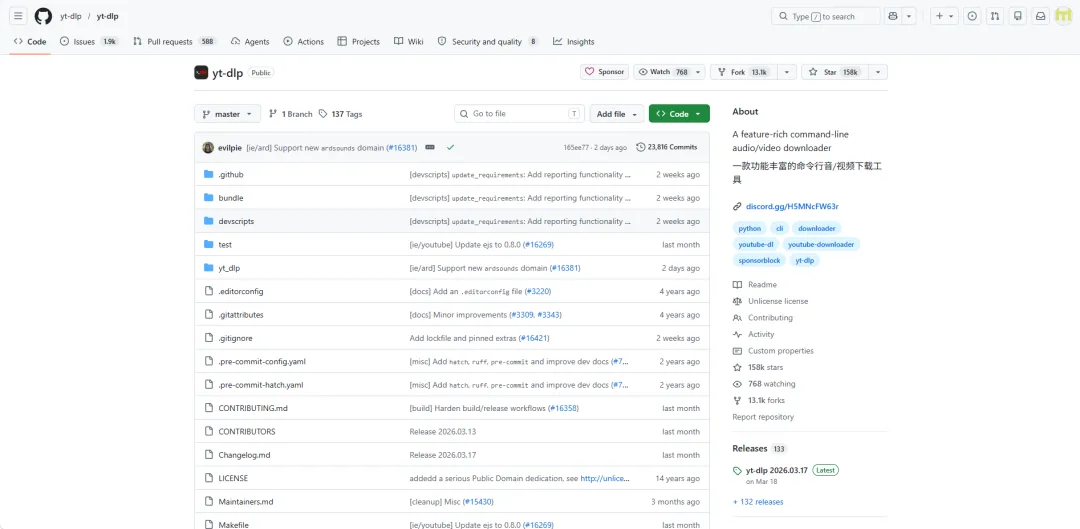 3. 社区活跃,持续更新作为一个开源项目,yt-dlp 拥有活跃的开发社区。开发者们会持续修复 Bug、适应网站改版并添加新功能。用户可以通过 GitHub 报告问题、请求功能,甚至贡献代码。项目提供了“稳定版”、“夜间版”等多个更新渠道,方便不同需求的用户获取最新特性。