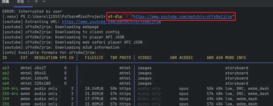yt-dlp https://youtu.be/视频ID2. 查看可下载的格式