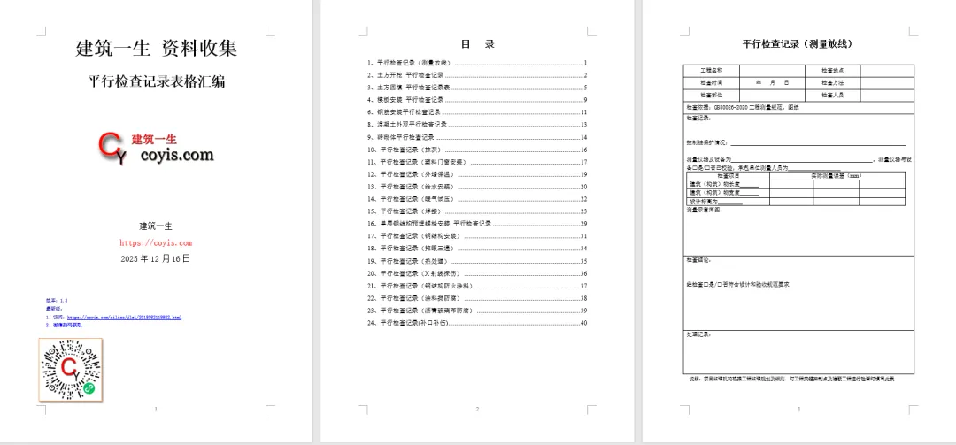 整体仍然有23份工序的平行检查,总体来说还是比较全的一份平行检查记录汇总。拿到即可使用!