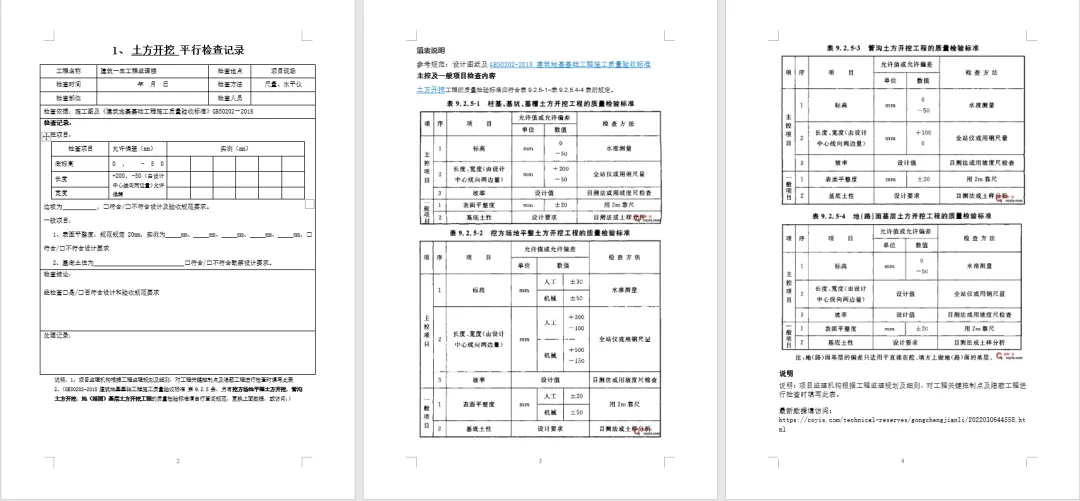 1、对其中的表格和版式进行了优化调整,对部分工序增加了填表说明如:土方开挖、回填、焊接等