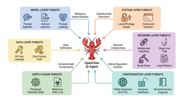 • 第三方插件平台ClawHub缺乏审计,成为供应链攻击的重灾区。 -