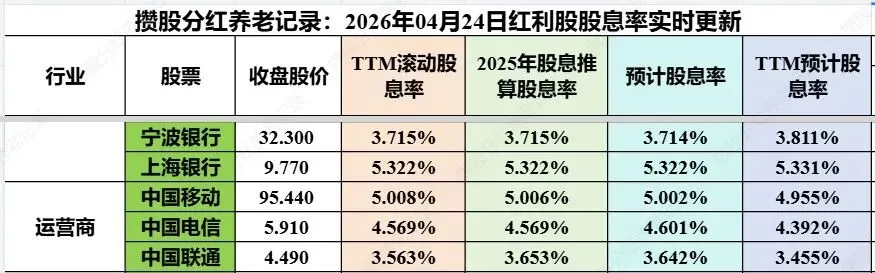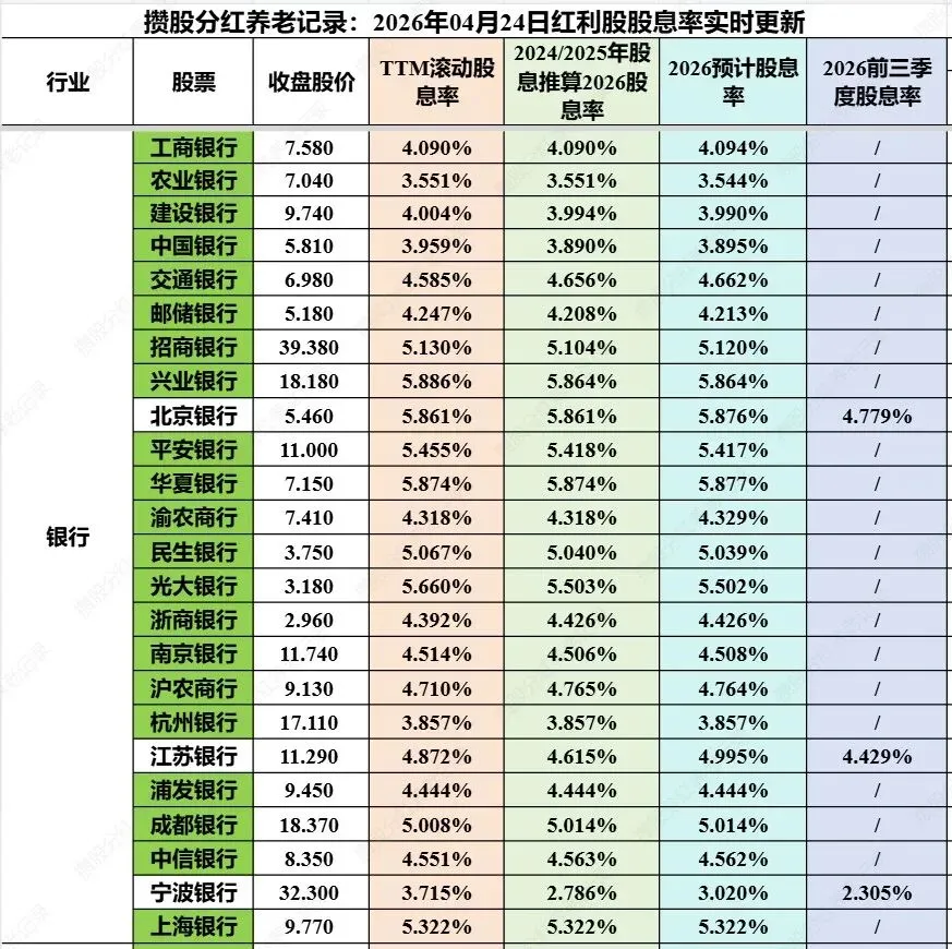在2025年报和2026一季报公布后,会对以上四种股息率进行更新!