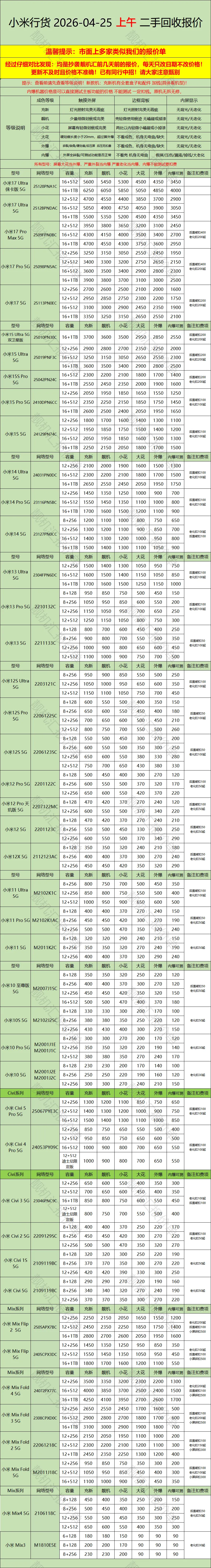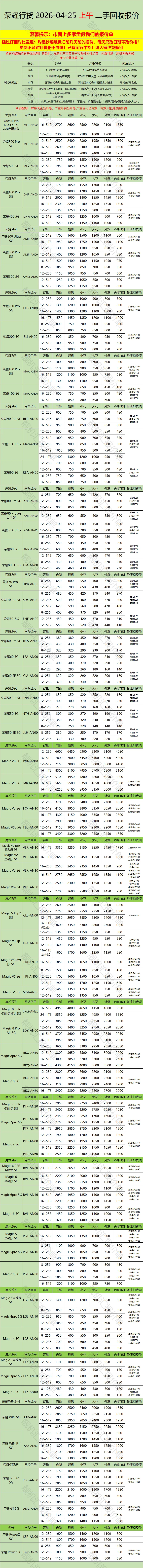 安卓机 回收报价 2026.4.25 报价不懂电讯 免费咨询回收 15967002326 发机写上名字 手机号 到货当天回款 价格不满意包邮寄回 收货地址:浙江省台州市路桥区电子数码城2楼2G02 任纪军 15967002326 来路不明抢盗勿扰 登记来路 一切后果自负 其他报价咨询加微信15967002326 华为回收报价 每日更新 荣耀回收报价 每日更新 oppo回收报价 每日更新 vivo回收报价 每日更新 iqoo回收报价 每日更新 小米回收报价 每日更新 请在微信客户端打开