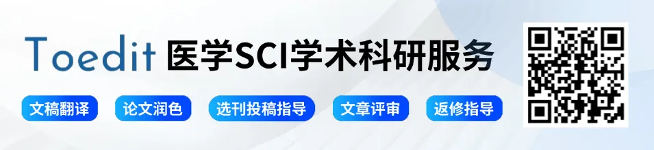 点击上方【Toedit 医学论文润色投稿】,添加关注不迷路~Toedit可为生物医学领域学者提供专业/高效的翻译/润色/选刊投稿等指导服务。想要进一步了解,可扫码咨询👆