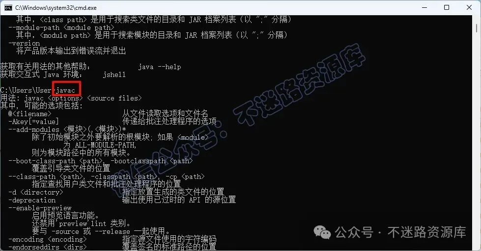 13.输入:javac,点击回车(Enter)键,可以看到这些信息