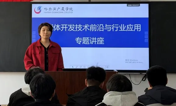 为帮助软件工程专业新生把握人工智能发展趋势,夯实专业认知、明晰学习方向,4月22日下午,哈尔滨广厦学院信息学院(新E代数智未来产业学院)成功举办智能体开发技术前沿与行业应用专题讲座。讲座特邀黑龙江海康网络科技有限公司项目经理于瑞彬担任主讲嘉宾,以“2026年AI Agent开发范式与行业Agentic AI落地实况”为主题,为软件工程专业2025级全体同学带来了一场内容丰富的前沿技术分享。