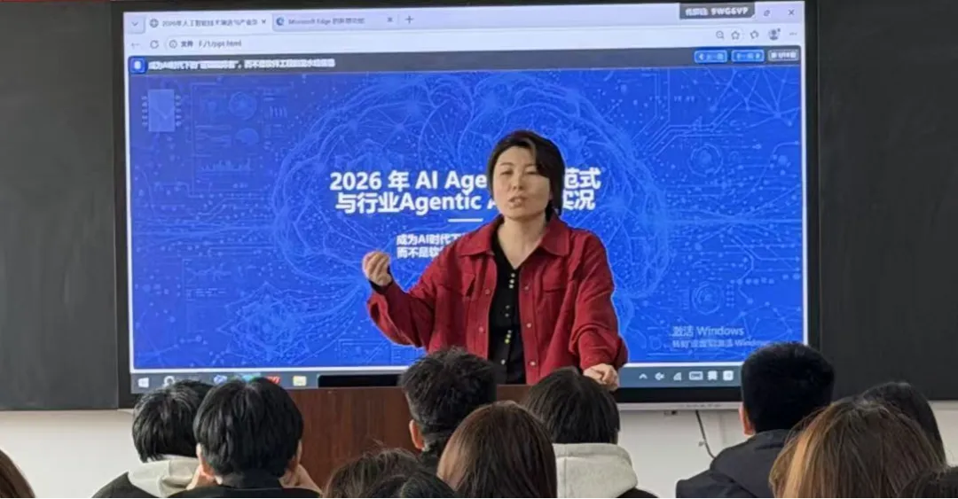 讲座中,于瑞彬从人工智能的发展历程切入,系统梳理了人工智能从计算智能、感知智能到认知智能、决策智能的演进过程,帮助学生建立起较为完整的技术认知框架。她指出,AI Agent作为人工智能迈向自主智能的重要方向,正在成为推动产业变革的重要力量。