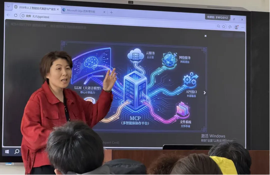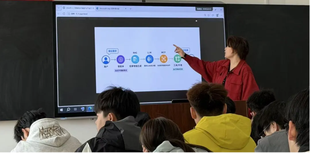 围绕AI Agent核心技术,讲座重点介绍了感知理解、任务规划、记忆存储、工具调用和反思迭代等关键模块,并结合典型案例,深入解析多智能体协同、自主执行和动态规划等核心能力,帮助学生更加直观地理解智能体的运行逻辑和应用价值。