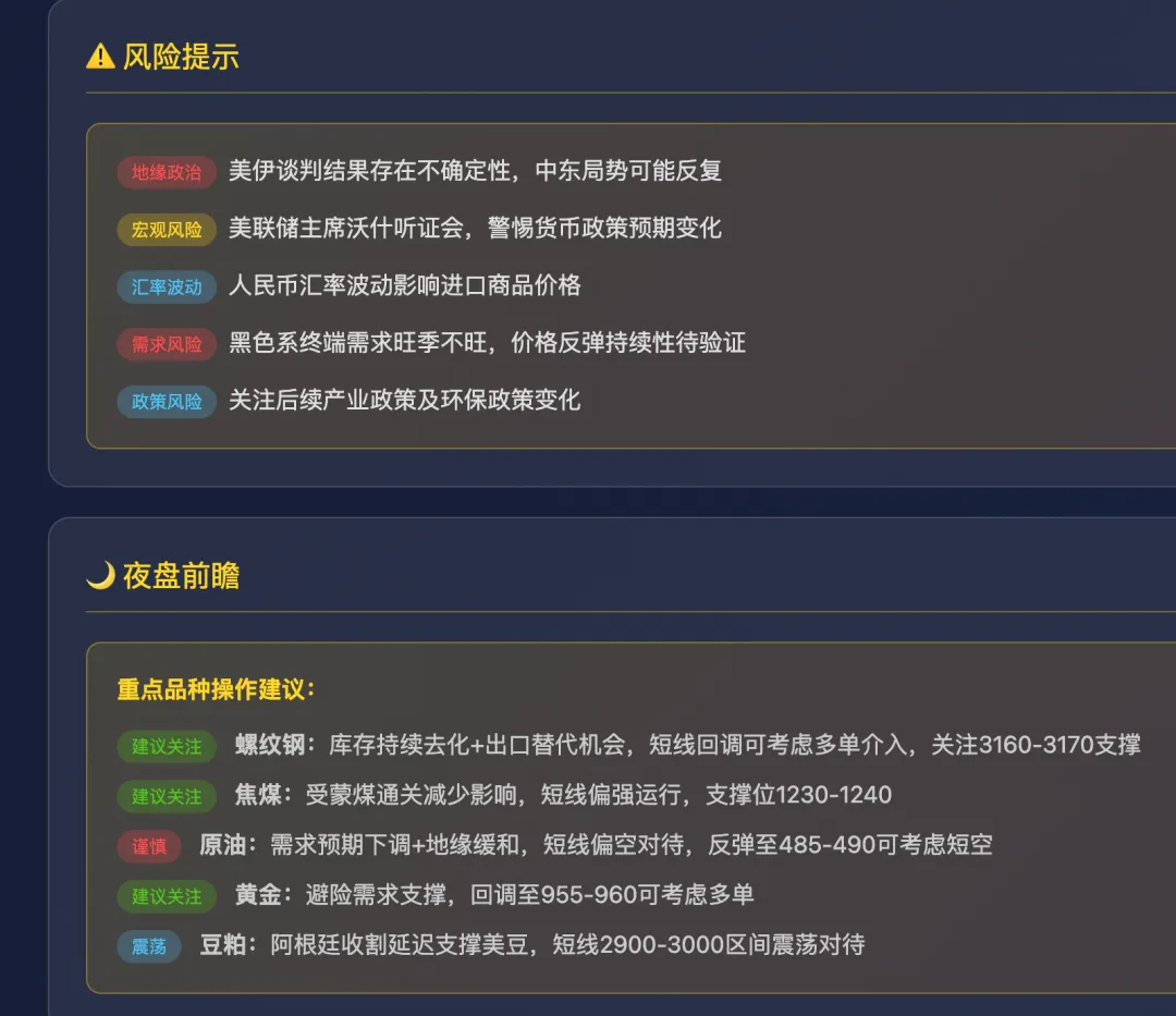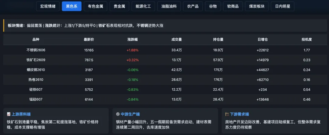 📌 国内交易提示:沪金/沪银比值与外盘略有差异,需考虑汇率、进口关税等因素黑色产业链(钢铁)