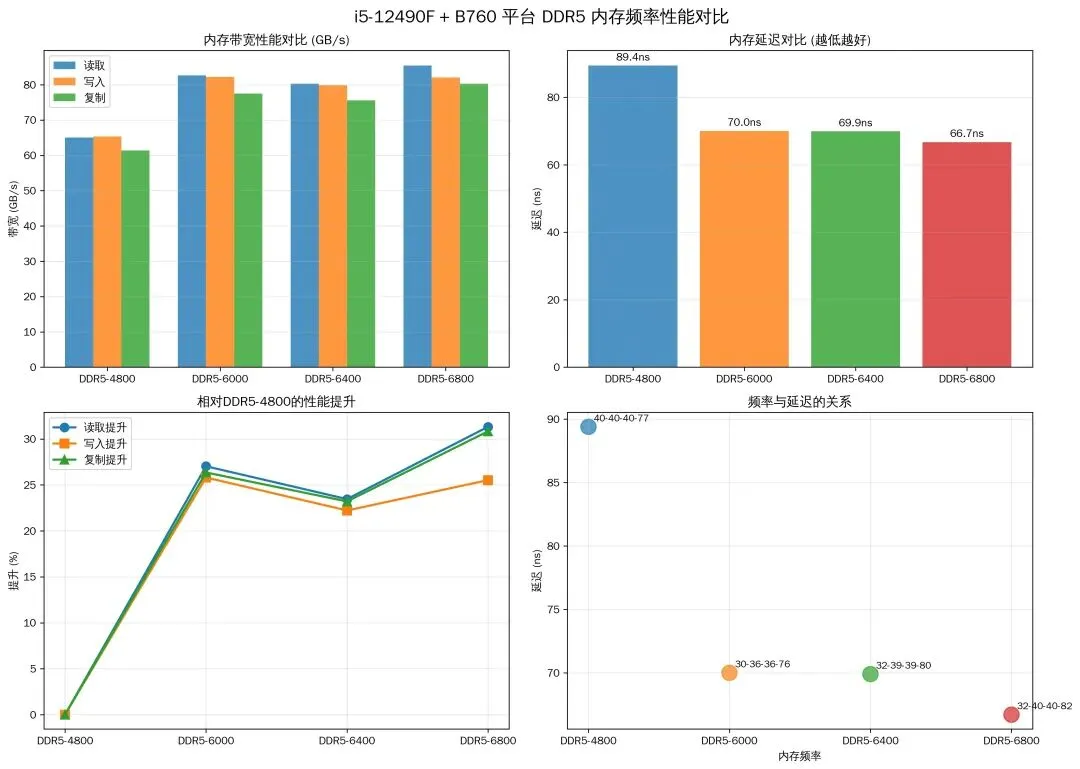 6000MHz 直接降至 70ns,降幅 21.7%,这是频率 + 时序优化的共同结果。