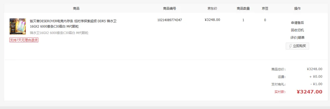 毁灭者锦衣卫16G*2 6000套条,在默频4800下运行,简直就是暴殄天物。