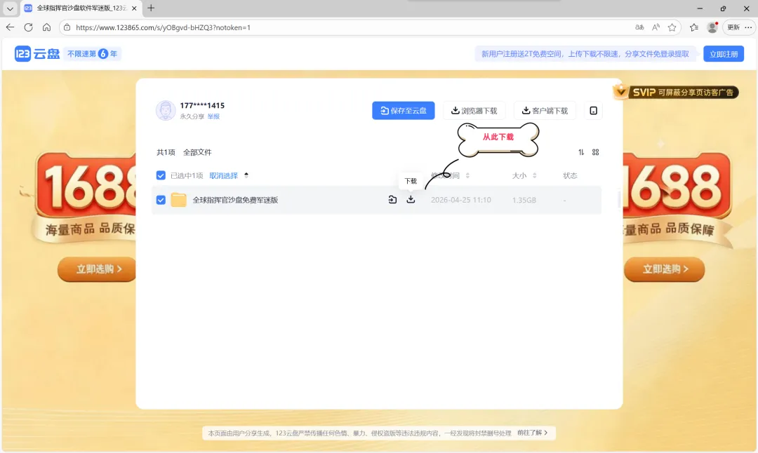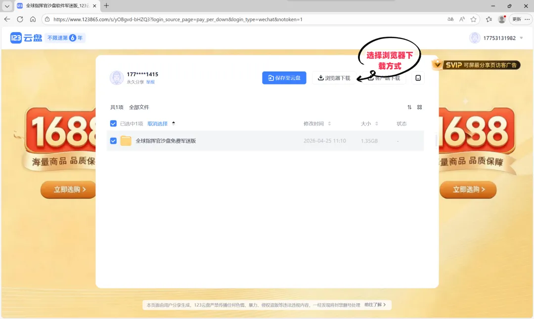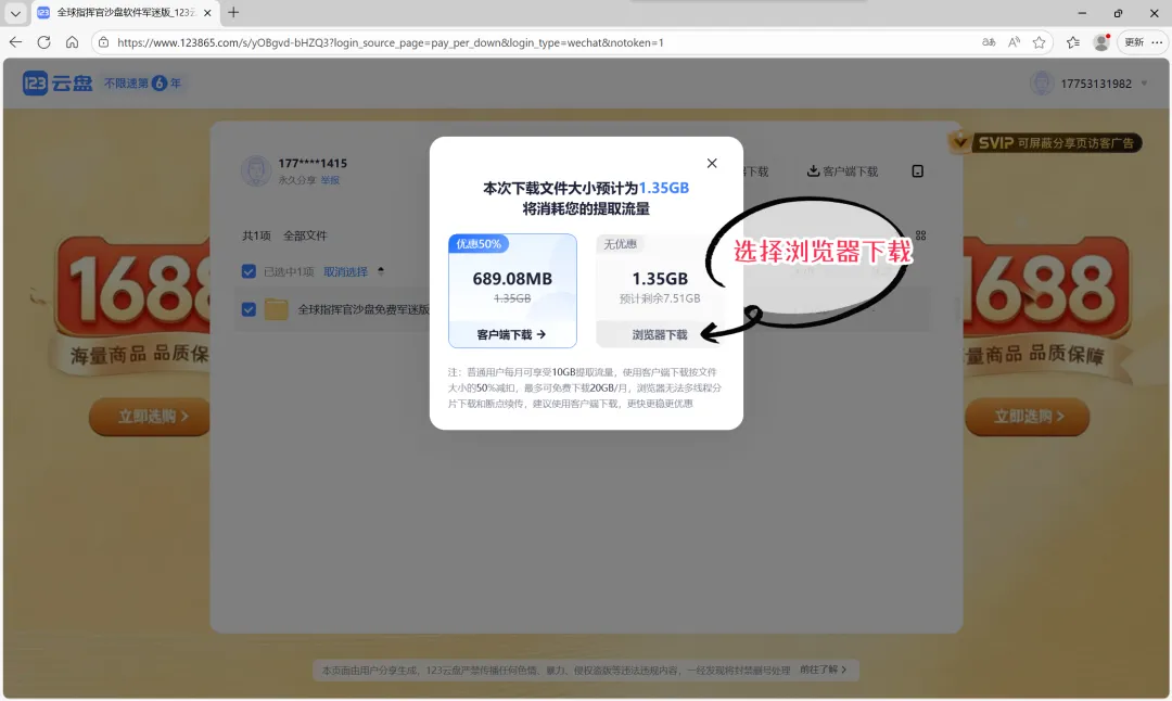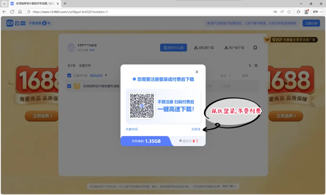沙盘下载指南,必看! 第一步,下载链接输入浏览器后,从此下载,见上图 第二步,直接登录,不要付费 第三步,微信扫描二维码,之后可能需要手机号二维码验证 第四步,建议选择浏览器下载,原因是省事,无需安装网盘客户端 第五步,选择浏览器下载,无需付费 第六步,正式下载,软件默认下载到浏览器下载文件中。