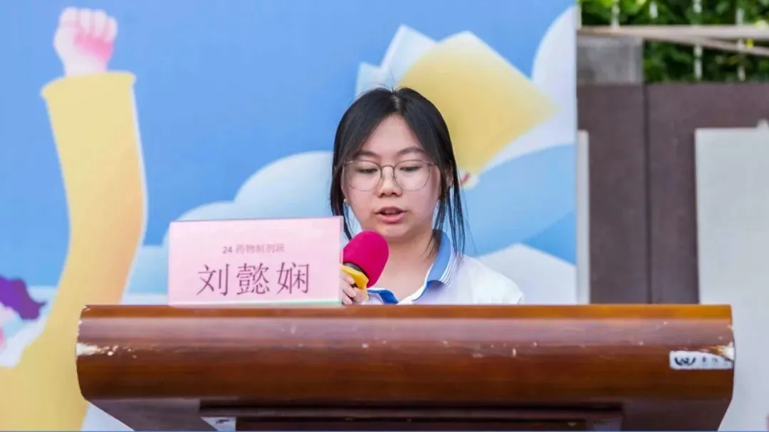 优秀学生代表、24药物制剂班刘懿娴分享了个人学习经历。她表示,在校期间通过专业课程、实验训练与生涯规划指导,自己从入学初的迷茫逐步明确了职业方向。她鼓励同学们不畏挑战、勤于总结,珍惜学校提供的实践平台。刘懿娴的讲述引发了在场同学的共鸣。