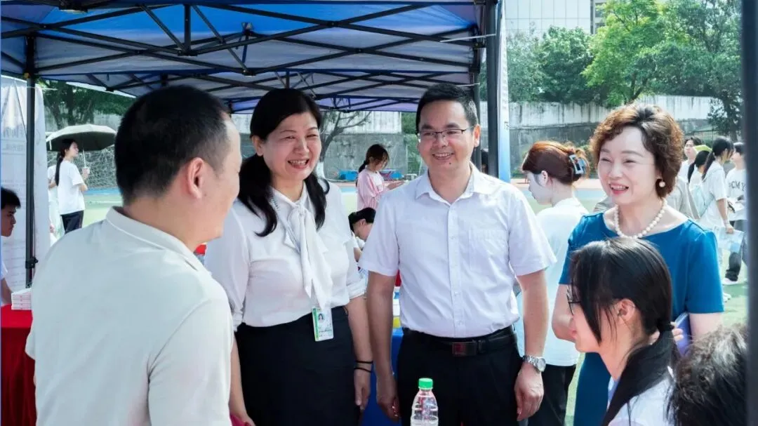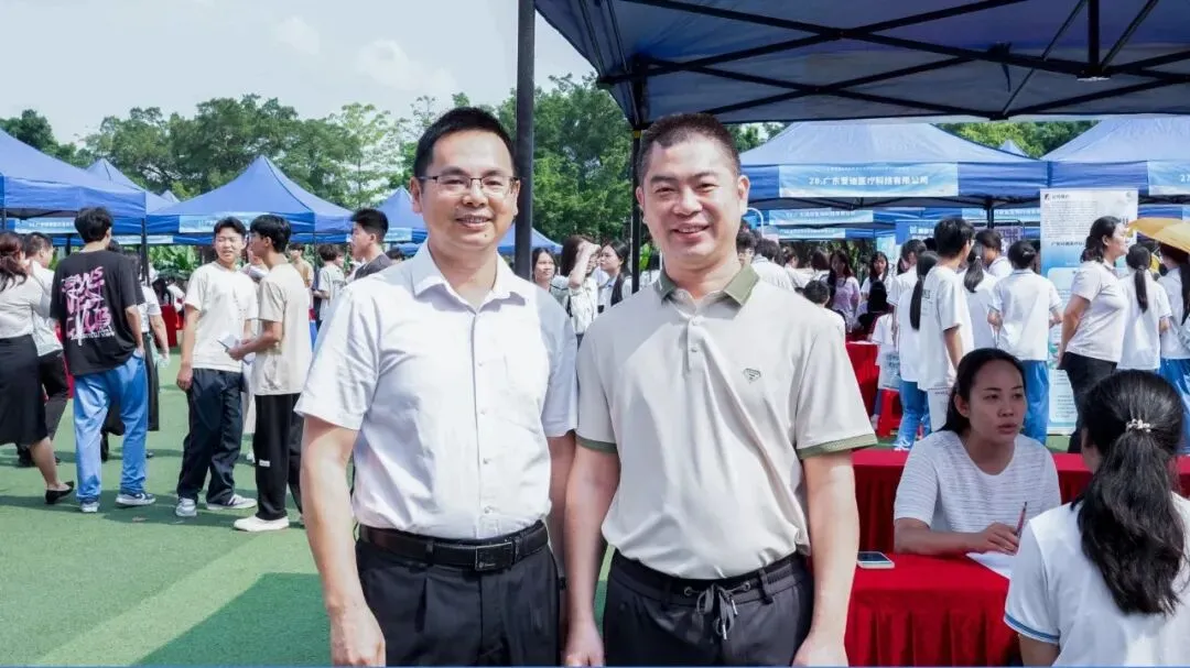 招聘会现场,广州医药股份有限公司、深圳麦科田生物医疗技术股份有限公司等企业展位有序排列,海报清晰列明岗位需求与任职要求。学校党委书记、校长虎松艳,副校长陈坤龙在实习就业指导中心及相关院系负责人陪同下,走访多家重点企业,详细了解招聘岗位与学生应聘情况。