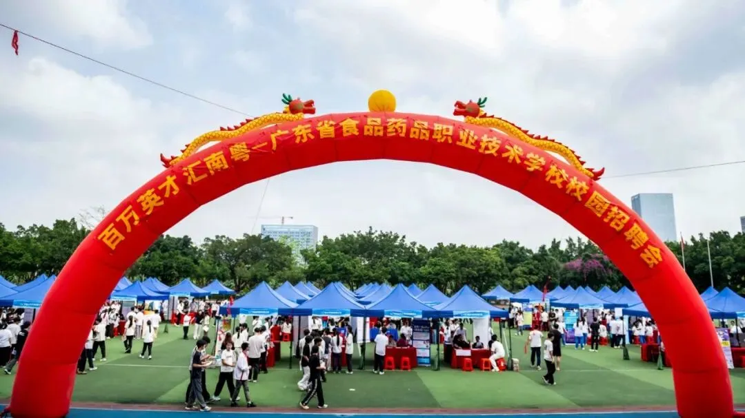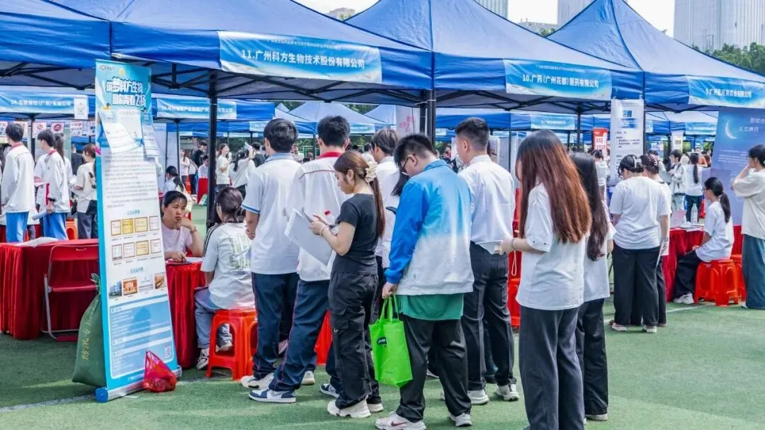 4月18日,我校足球场上人潮熙攘、气氛热烈,2026年“百万英才汇南粤”春季校园招聘会在此隆重举行。来自粤港澳大湾区的128家优质企业与医疗机构携数千个实习就业岗位进校选才,覆盖药学、食品、护理、医学检验、医疗器械等多个专业领域,吸引2027届首批817名实习生及2026届毕业生踊跃参会。现场交流互动频繁,呈现出供需两旺的蓬勃景象。