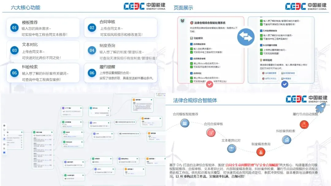 基于Dify打造的法律合规综合智能体,围绕“合同全生命周期管理”与“企业合规赋能”两大核心,构建覆盖合同模板智能推荐、合规审核、文本差异比对、内部制度精准查询、纠纷案例检索、履约节点提醒的全流程法务合规工作台。依托知识库与大模型,可快速完成合同风险提示与法律相关查询。以 AI 重构法务工作流,实现效率拉满、合规可控!