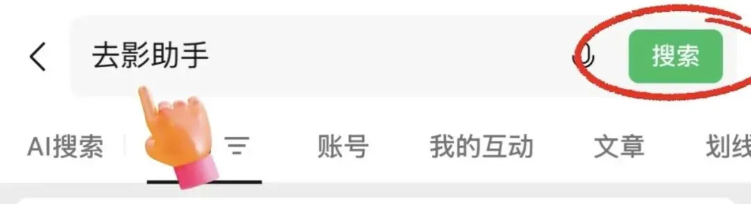 2. 微信下拉搜索去影助手,正规小程序直接点击进入首页,无需实名认证、无需开通任何会员权限;