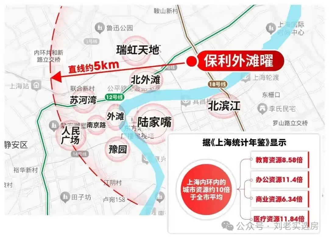而保利外滩曜周边12/18号线双轨交环绕,2站北滨江/北外滩、5站南京西路。直线距离约5公里覆盖外滩、陆家嘴、人民广场等核心板块,与市中心资源深度绑定。