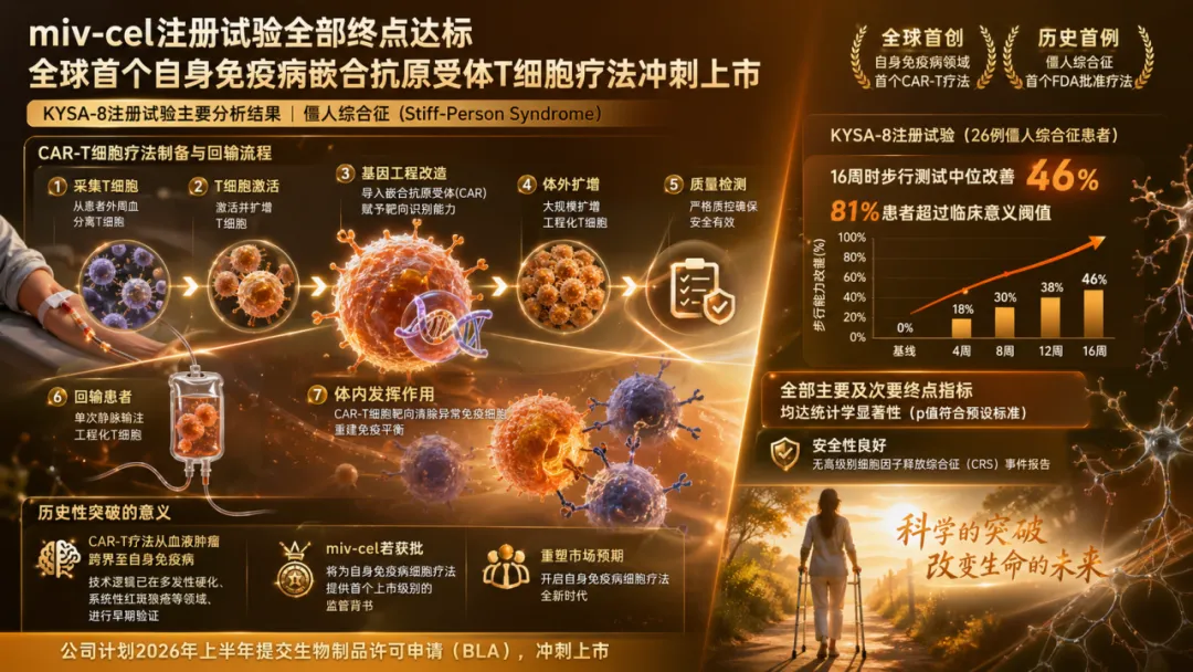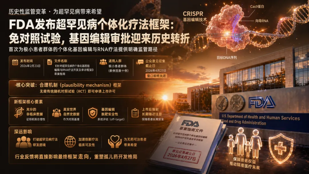 【AI医药】默沙东×谷歌云10亿美元合作、诺和诺德×OpenAI、英矽智能×礼来27.5亿美元协议相继落地,晶泰科技宣告全球AI for Science首家盈利——AI制药正式跨越商业化临界点。【脑机接口】博睿康NEO获批成全球首款上市植入式脑机接口,Science Corp同周完成首例人体植入,Neuralink宣布量产并启动视觉恢复试验,脑机接口写入十五五规划,中美竞赛格局骤然清晰。【罕见病】miv-cel注册试验全部终点达标剑指历史首批自身免疫病CAR-T、FSGS迎来全球首款获批药物、Avlayah突破血脑屏障却引发年龄限制争议,FDA超罕见病框架意见截止在即,罕见病治疗进入加速轨道。
