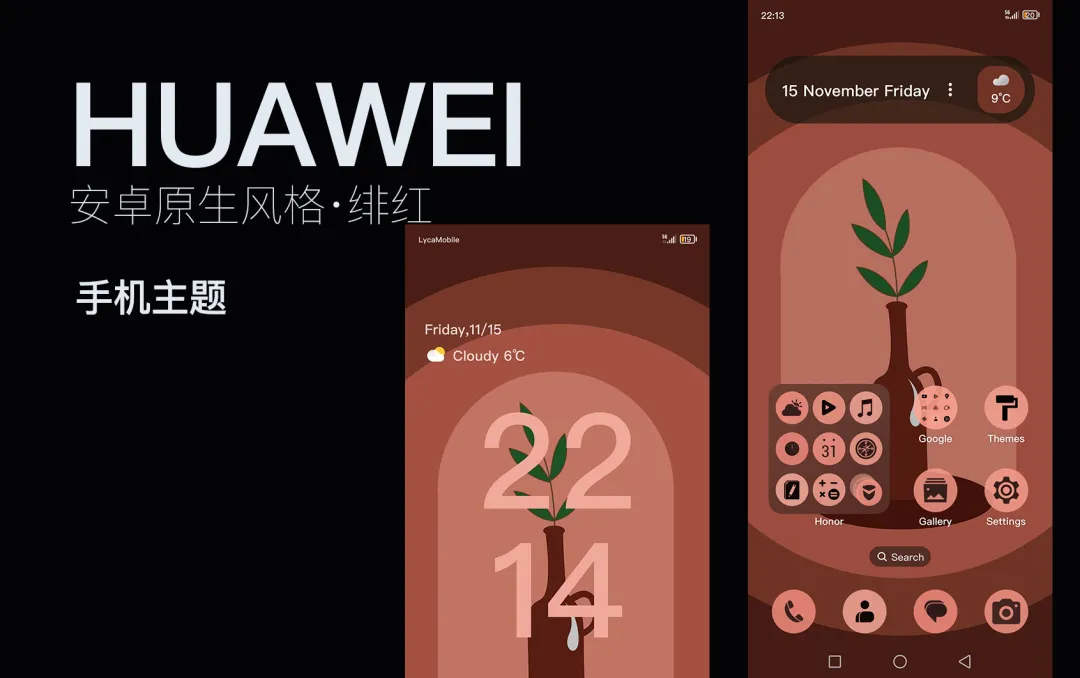 华为荣耀主题 | 原生安卓Pixel风格·绯红手机主题