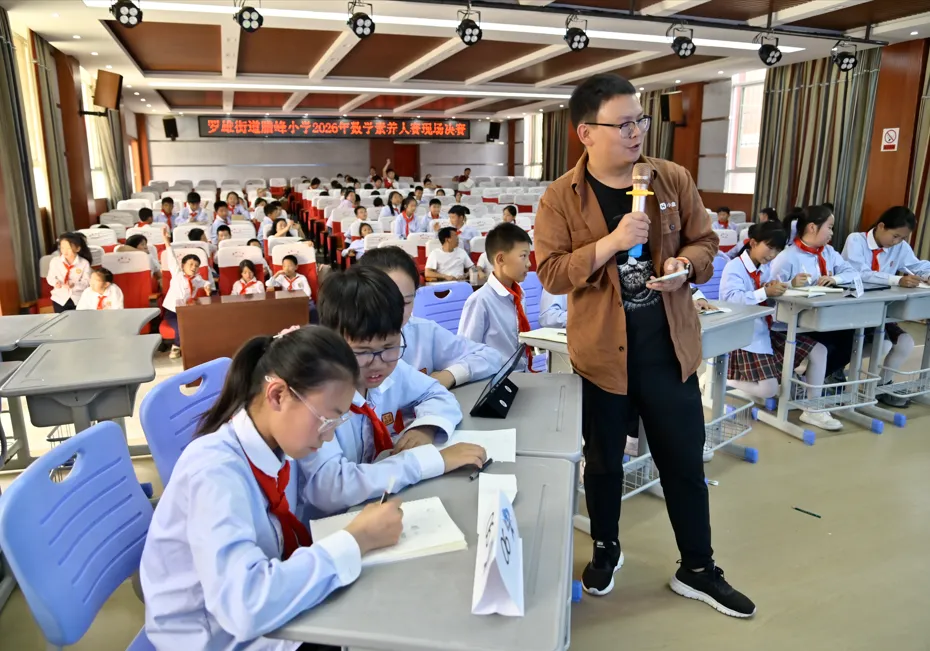 2026年4月21日,罗平县腊峰小学报告厅内,数字与思维的火花正在绽放。孩子们手持平板电脑,时而飞速心算,时而凝视数独网格,时而摆弄华容道滑块——这不是传统的数学考试,而是一场融合速算、数独、数字华容道、七巧板四大模块的“数学文化嘉年华”。