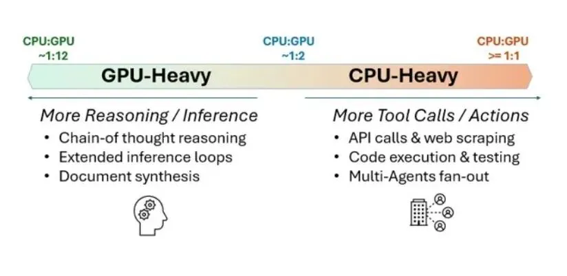例如,在多任务推理场景中,GPU可能处于等待状态,而CPU却因为调度压力过大成为系统短板;在智能体应用中,大量时间消耗在工具调用与数据处理上,这些都无法通过增加GPU来解决。