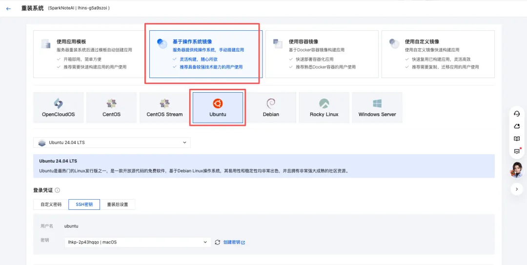 进入到服务器详情页,把服务器的操作系统重装为 ubuntu:
