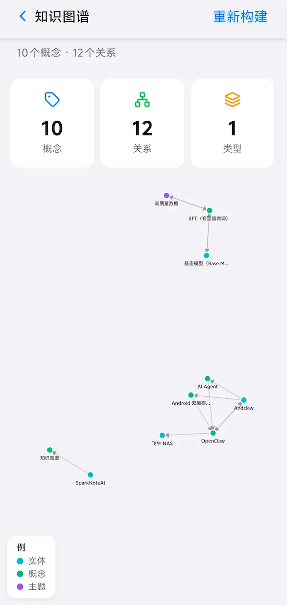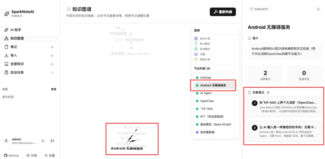 同时系统也自动根据导入的笔记构建了知识图谱: