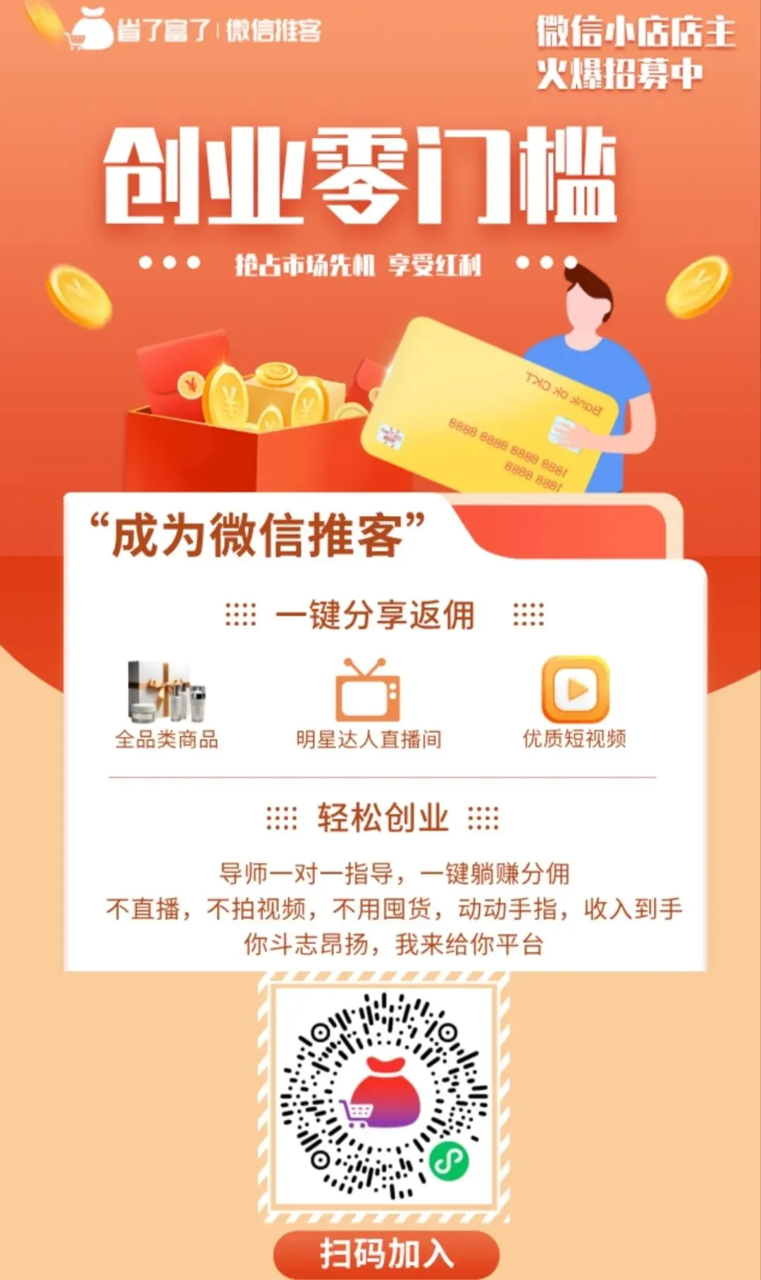 零门槛入局,不用囤货发货,无资金压力;