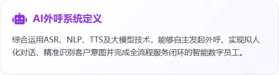 简单来说,AI机器人外呼系统,就是通过人工智能技术模拟人工坐席,自动完成拨号、沟通、记录、分类等一系列外呼工作的智能系统。