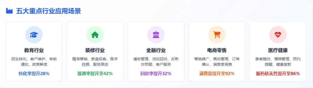 AI机器人外呼系统并非单一功能,它的适配场景十分广泛,几乎覆盖各行各业,尤其适合这些高频外呼需求: