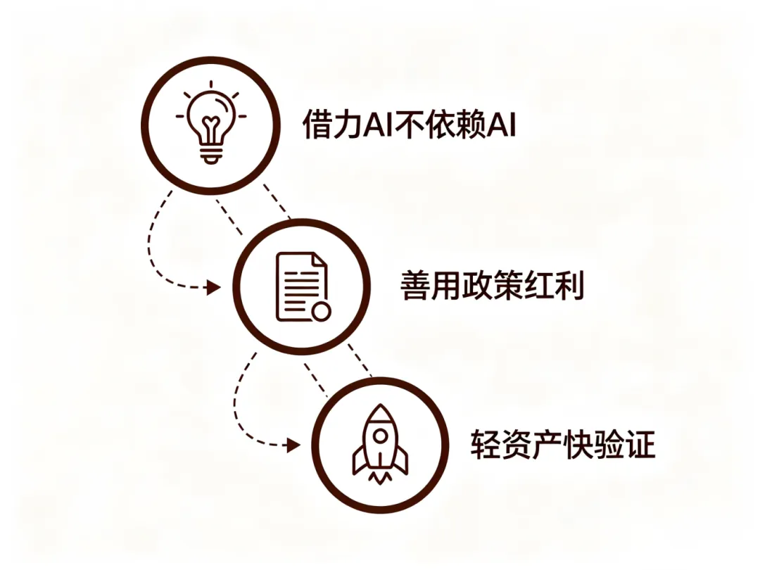 它的核心优势就是轻资产、低门槛、高敏捷,借助AI工具,你一个人就能打通产品设计、研发、营销、服务全链路,不用承担高额的人力成本和房租成本,甚至零成本就能启动。