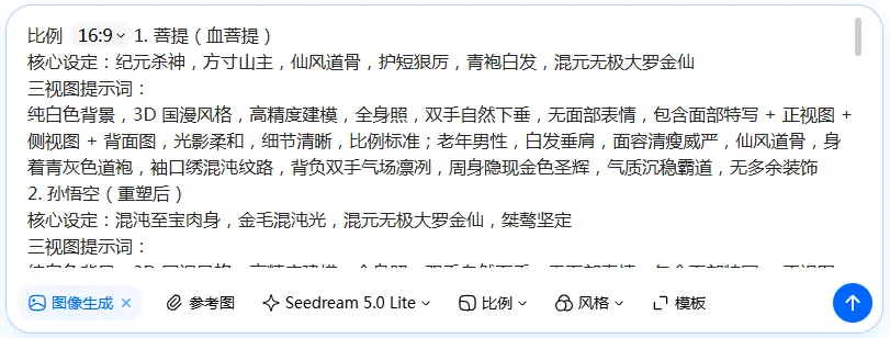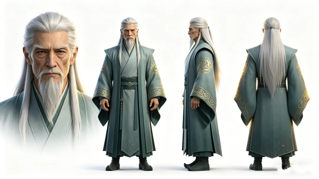 1. 菩提(血菩提)核心设定:纪元杀神,方寸山主,仙风道骨,护短狠厉,青袍白发,混元无极大罗金仙三视图提示词:纯白色背景,3D 国漫风格,高精度建模,全身照,双手自然下垂,无面部表情,包含面部特写 + 正视图 + 侧视图 + 背面图,光影柔和,细节清晰,比例标准;老年男性,白发垂肩,面容清瘦威严,仙风道骨,身着青灰色道袍,袖口绣混沌纹路,背负双手气场凛冽,周身隐现金色圣辉,气质沉稳霸道,无多余装饰2. 孙悟空(重塑后)核心设定:混沌至宝肉身,金毛混沌光,混元无极大罗金仙,桀骜坚定三视图提示词:纯白色背景,3D 国漫风格,高精度建模,全身照,双手自然下垂,无面部表情,包含面部特写 + 正视图 + 侧视图 + 背面图,光影柔和,细节清晰,比例标准;猿猴人形,通体金毛泛混沌微光,金瞳深邃,身形矫健精悍,身披锁子黄金甲简化版,手持混元一气棍,背部隐现龙凰虚影,肌肉线条流畅,气势凌厉3. 如来核心设定:灵山之主,准圣巅峰,宝相庄严,伪善狠厉三视图提示词:纯白色背景,3D 国漫风格,高精度建模,全身照,双手自然下垂,无面部表情,包含面部特写 + 正视图 + 侧视图 + 背面图,光影柔和,细节清晰,比例标准;中年男性,肥头大耳,金身佛光,身披金色袈裟,手持九品莲台,面容肃穆威严,周身佛光环绕,体型壮硕,气质压迫4. 玉帝(昊天)核心设定:三界至尊,天庭之主,威严隐忍,后期臣服三视图提示词:纯白色背景,3D 国漫风格,高精度建模,全身照,双手自然下垂,无面部表情,包含面部特写 + 正视图 + 侧视图 + 背面图,光影柔和,细节清晰,比例标准;中年帝王,头戴冕旒,身着九龙皇袍,面容冷峻,身形挺拔,天庭帝王气质,周身仙气内敛,无多余装饰5. 女娲娘娘核心设定:混沌古神,造人补天,温婉强大,布局者三视图提示词:纯白色背景,3D 国漫风格,高精度建模,全身照,双手自然下垂,无面部表情,包含面部特写 + 正视图 + 侧视图 + 背面图,光影柔和,细节清晰,比例标准;绝美女性,长发及腰,身着五彩仙裙,周身环绕造化之气,面容温婉圣洁,气质空灵,身形优雅6. 元核心设定:混沌三古神之首,秩序化身,冷漠疏离,强大神秘三视图提示词:纯白色背景,3D 国漫风格,高精度建模,全身照,双手自然下垂,无面部表情,包含面部特写 + 正视图 + 侧视图 + 背面图,光影柔和,细节清晰,比例标准;俊美青年,白衣胜雪,长发披肩,面容淡漠,周身秩序符文流转,气质冰冷疏离,身形修长7. 盘核心设定:混沌古神,毁灭化身,高大霸道,暴戾疯狂三视图提示词:纯白色背景,3D 国漫风格,高精度建模,全身照,双手自然下垂,无面部表情,包含面部特写 + 正视图 + 侧视图 + 背面图,光影柔和,细节清晰,比例标准;高大男性,丈许身形,赤裸上身布满混沌纹路,面容模糊,周身毁灭气息,体型魁梧,气势狂暴8. 珠珠核心设定:盘古心脏所化,河蚌精,娇俏可爱,后期开天之力继承者三视图提示词:纯白色背景,3D 国漫风格,高精度建模,全身照,双手自然下垂,无面部表情,包含面部特写 + 正视图 + 侧视图 + 背面图,光影柔和,细节清晰,比例标准;少女形象,粉雕玉琢,短发俏皮,身着淡彩蚌衣,身后隐现河蚌虚影,身形娇小玲珑,气质灵动9. 金蝉子(唐僧)核心设定:如来二弟子,隐忍深沉,暗中留生机,赎罪者三视图提示词:纯白色背景,3D 国漫风格,高精度建模,全身照,双手自然下垂,无面部表情,包含面部特写 + 正视图 + 侧视图 + 背面图,光影柔和,细节清晰,比例标准;清秀僧人,身披锦襕袈裟,手持九环锡杖,面容平静,身形清瘦,气质沉稳内敛10. 元始天尊核心设定:三清之首,白发俊美,混沌布局者,冷漠算计三视图提示词:纯白色背景,3D 国漫风格,高精度建模,全身照,双手自然下垂,无面部表情,包含面部特写 + 正视图 + 侧视图 + 背面图,光影柔和,细节清晰,比例标准;白发俊美男性,身着玄色道袍,周身混沌之气,面容冷峻,气质高傲疏离,身形挺拔11. 灵宝天尊核心设定:三清之一,冷峻沉默,持古钟,理智隐忍三视图提示词:纯白色背景,3D 国漫风格,高精度建模,全身照,双手自然下垂,无面部表情,包含面部特写 + 正视图 + 侧视图 + 背面图,光影柔和,细节清晰,比例标准;黑发冷峻男性,身着暗金道袍,背负混沌古钟,面容严肃,气质沉稳,身形中等12. 太上老君核心设定:三清之一,温和世故,炼丹炼器,圆滑妥协三视图提示词:纯白色背景,3D 国漫风格,高精度建模,全身照,双手自然下垂,无面部表情,包含面部特写 + 正视图 + 侧视图 + 背面图,光影柔和,细节清晰,比例标准;鹤发童颜老者,身着青色道袍,手持拂尘,面容温和,气质慈祥,身形清瘦13. 接引道人核心设定:佛门二圣之首,苍老威严,隐忍退让三视图提示词:纯白色背景,3D 国漫风格,高精度建模,全身照,双手自然下垂,无面部表情,包含面部特写 + 正视图 + 侧视图 + 背面图,光影柔和,细节清晰,比例标准;苍老僧人,白眉垂肩,身着金色袈裟,手持菩提枝,面容疲惫威严,身形枯瘦14. 准提道人核心设定:佛门二圣,高傲狠厉,后期自废修为三视图提示词:纯白色背景,3D 国漫风格,高精度建模,全身照,双手自然下垂,无面部表情,包含面部特写 + 正视图 + 侧视图 + 背面图,光影柔和,细节清晰,比例标准;中年僧人,面容慈悲却凌厉,身着杏黄袈裟,手持七宝妙树,气质高傲,身形挺拔15. 猪八戒核心设定:前元帅,取经人,懦弱趋利,被贬凡人三视图提示词:纯白色背景,3D 国漫风格,高精度建模,全身照,双手自然下垂,无面部表情,包含面部特写 + 正视图 + 侧视图 + 背面图,光影柔和,细节清晰,比例标准;猪形人身,