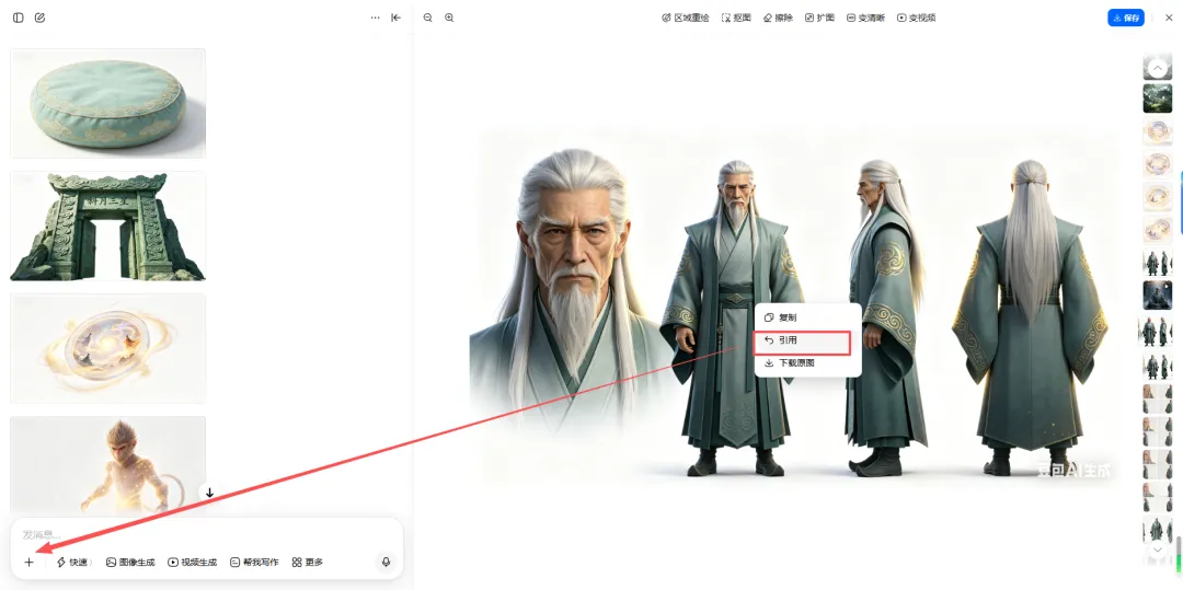 这些工作准备好了之后,我们就逐一开始生成图片了,建议在自己的电脑上新建三个文件夹《人物角色库》《场景库》《道具库》,命名好、分类保存!
