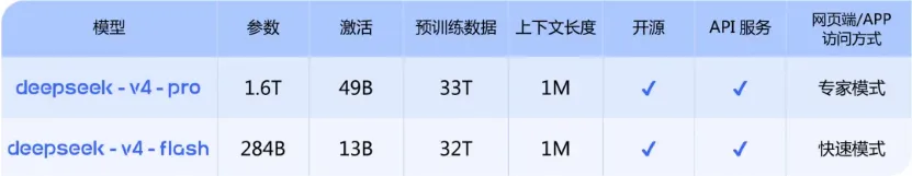 DeepSeek-V4版本说明,图源:网络