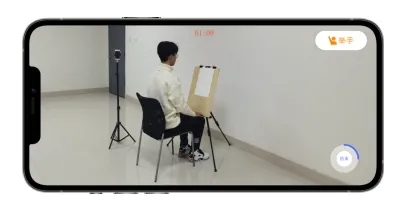 根据语音指令开始作答,作答过程中,考生可在主机查看考题;注:如辅机出现关机、锁屏、意外中断等情况,请考生点击主机录制页面左上角的“辅机码”弹出二维码,辅机重新扫码进入考试状态。