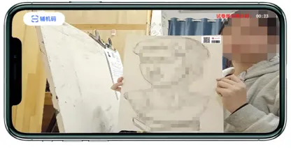 1.考试结束后,请根据语音指令、录制画面右上角倒计时结束标识,将作品放于考生胸前,考生脸部与答题卷整体同时在主机前展示30秒钟。