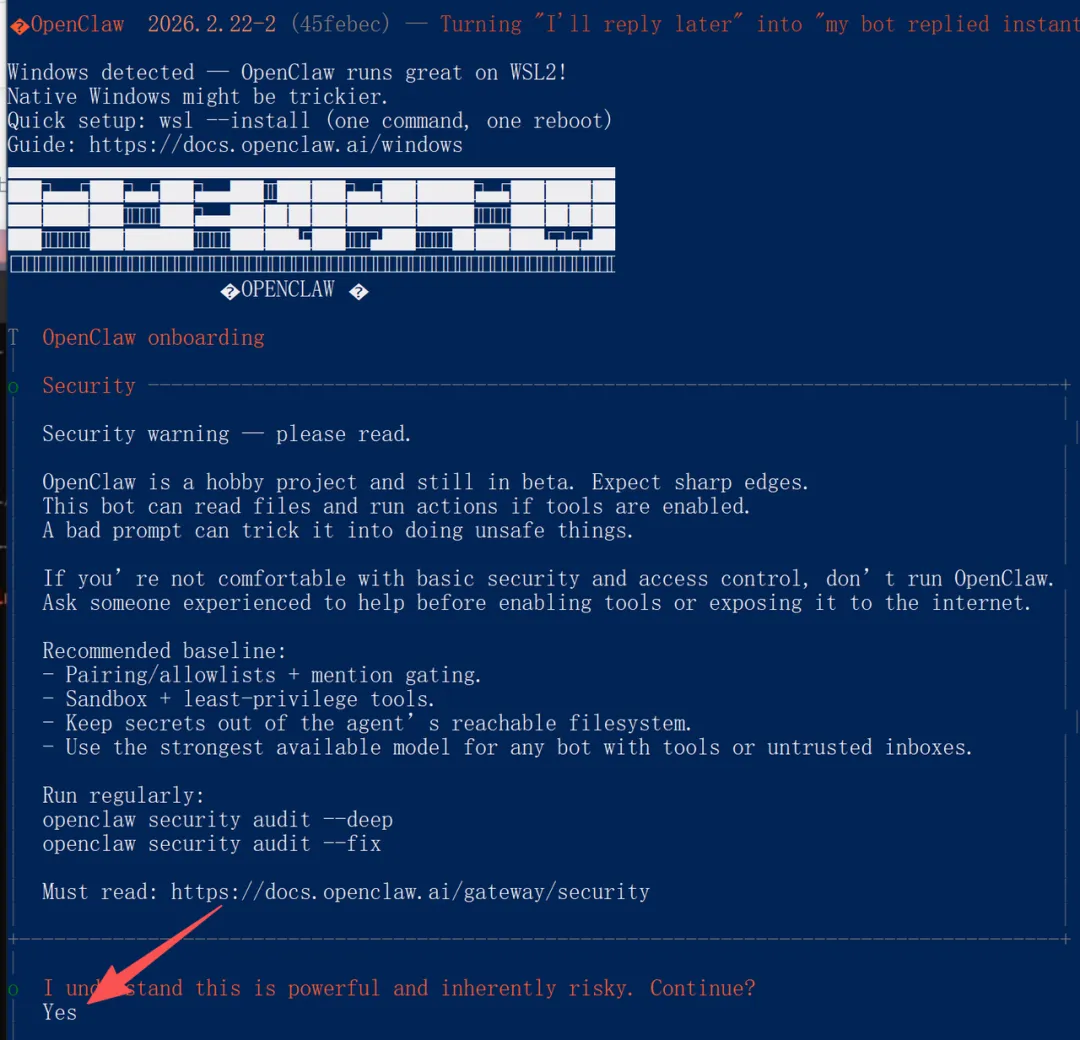 安装成功后,显示如下图,是一些警告提示, 直接点击【yes】