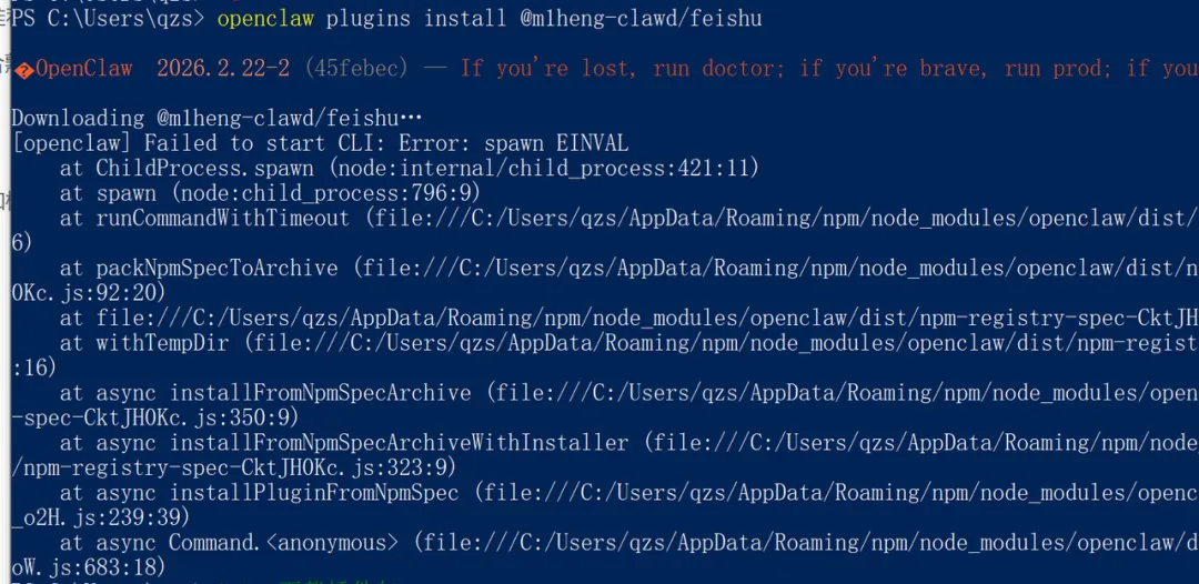 # 进入插件的安装目录,具体路径请根据你的报错信息确认cd C:\Users\你的用户名\.clawdbot\extensions\feishu# 或者可能是这个路径(根据你的OpenClaw版本)# cd C:\Users\你的用户名\.openclaw\extensions\feishu# 安装依赖npm install