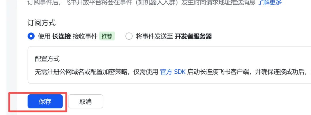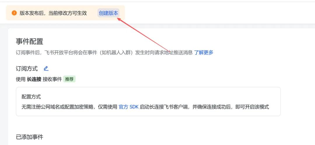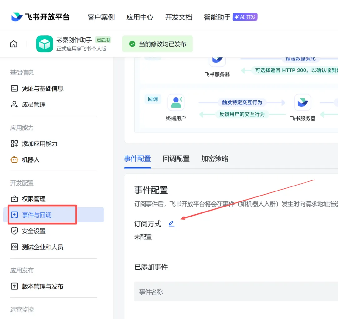 在飞书开放平台,你创建的应用下找到【事件与回调】