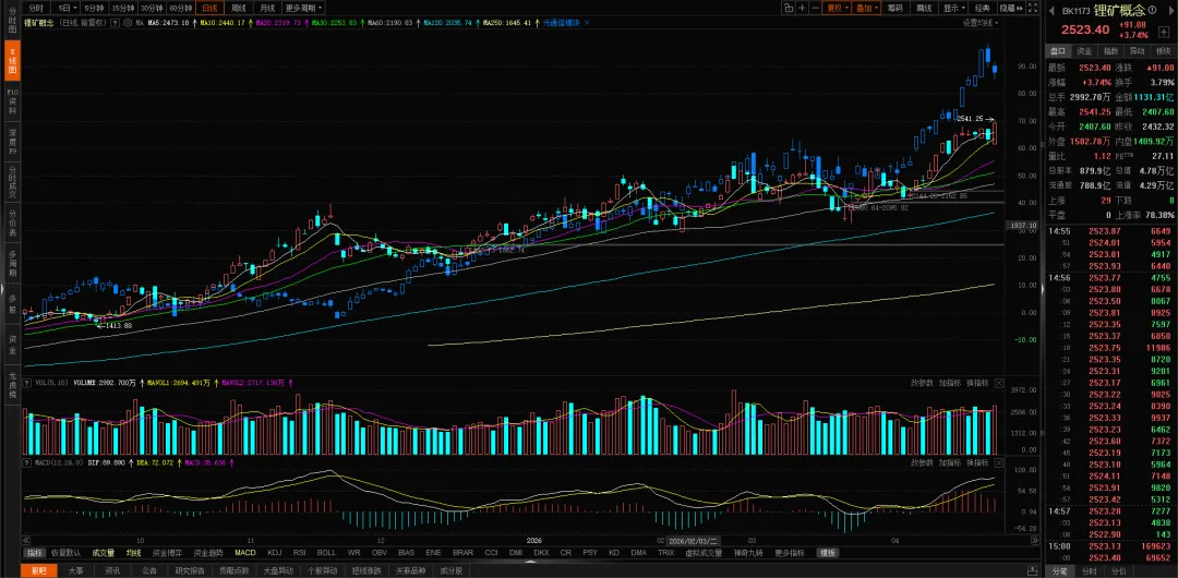 光通信板块的炒作如火如荼,部分核心个股都已经累积了不小的涨幅,开始转震荡调整,趁着这个节点市场中有部分参与者选择了一些其他板块来抢夺流出“光”的资金,其中有一股力量个人认为不可忽视,或许能成为5月的主角–Li。