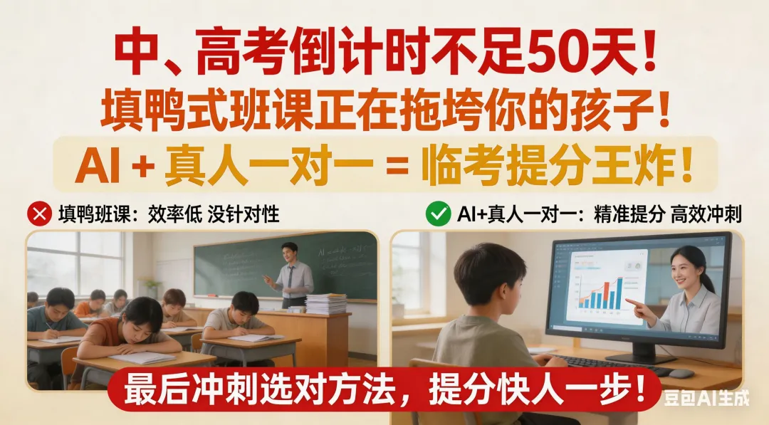 50 人的班级,晚自习只剩十几个。留下的清一色成绩靠前,走出去的各有各的方向 —— 有的去了 AI 智能自习室,有的在家用 AI 精准刷题,还有的跟着一对一老师做最后冲刺。